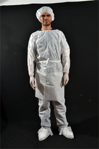 Casaca manga larga con puños elastizados, abierta en espalda con dos tiras en el cuello y la cintura para cerrar y ajustar. El largo de la prenda en el talle XL es 110 cm aprox.