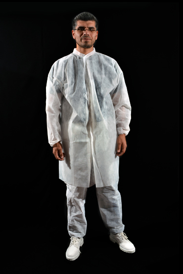 Tipo delantal manga larga elastizado en los puños, cuello mao, abierto en el frente con 4 abrojos o broches para su cierre y ajuste. Largo aproximado en el talle XL es de 110 cm.